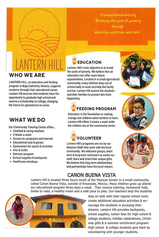 ​Our next Adventure is not just for youth, but families.  We are taking a mission trip to Mexico to help Lantern Hill, an organization that helps kids get the education and support they need to thrive.  Please consider joining us on our trip, or supporting our efforts!  More information can be found in the poster to the left.